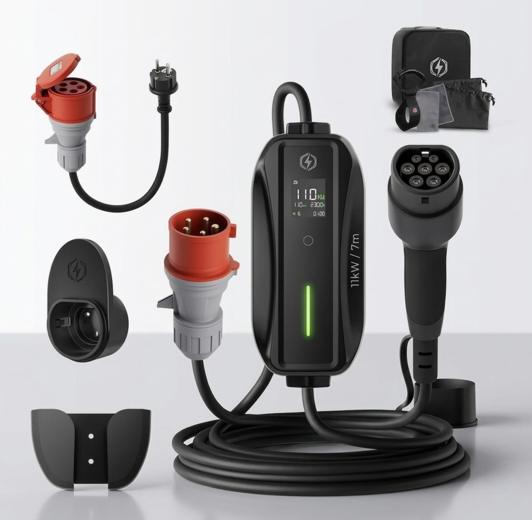 Mobile Wallbox 11 kW snažna je i pouzdana prijenosna punionica za električna vozila koja omogućuje brzo i sigurno punjenje kod kuće, na putu ili na poslu. Zahvaljujući 3-faznom priključku na industrijsku CEE utičnicu osigurava snagu punjenja do 11 kW, što znatno skraćuje vrijeme punjenja u usporedbi s uobičajenim kućnim punjačima.